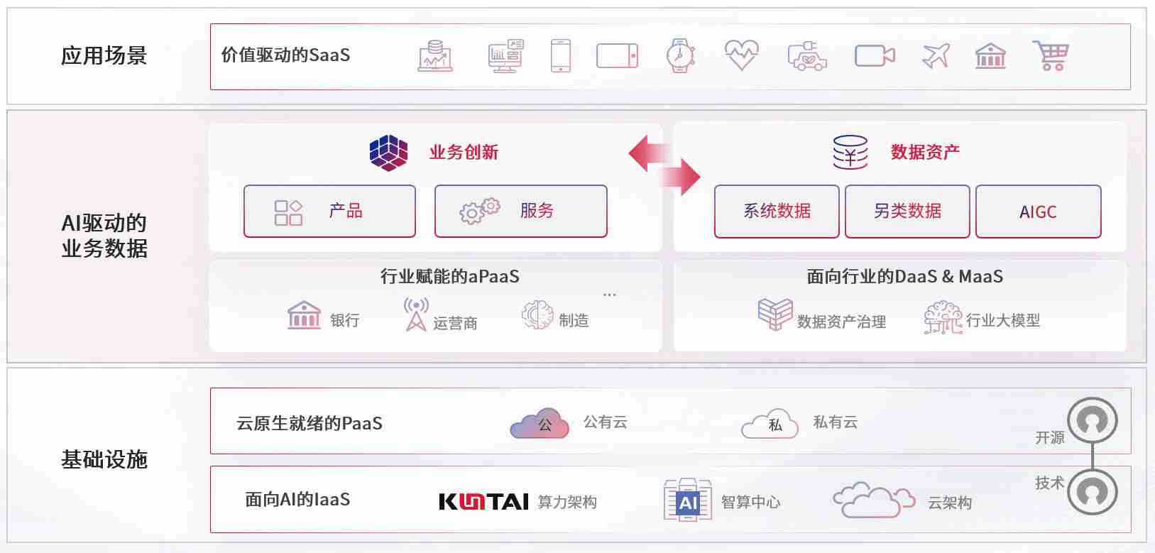 数字时代,,围绕企业数字化转型的关键要素,,Z6尊龙数码开创性的提出数云融合战略和技术体系框架,,,,着力在云原生、、数字原生、、、、AI原生和信创产业上架构产品和服务能力,,为处在不同数字化转型阶段的快消零售、、、汽车、、金融、、、医疗、、、、政企、、、教育、、运营商等行业客户提供泛在的敏捷IT能力和融合的数据驱动能力,,构建跨界融合创新的数字业务场景和新业务模式,,,,助力企业级客户建立面向未来的核心能力和竞争优势,,全面推动社会的数字化、、、智能化转型升级。。。。